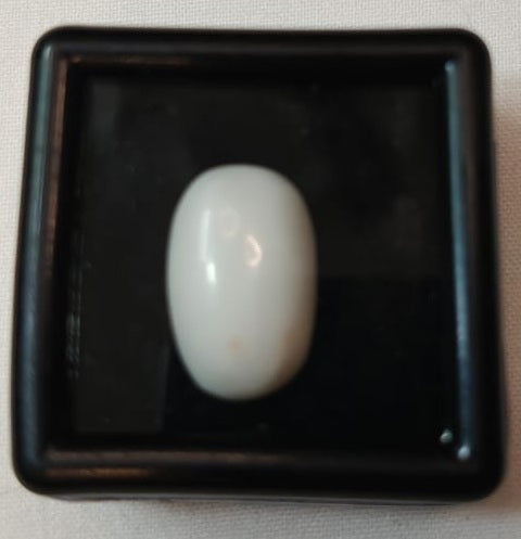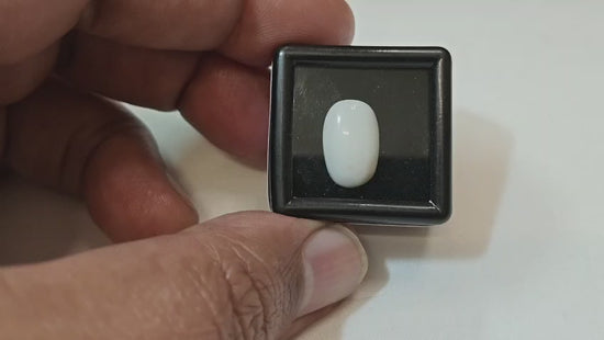Natural White Italian Coral (Safed Moonga) – 5.90 Carat Oval Cabochon This authentic Italian white coral, weighing 5.90 carats, features a refined oval cabochon cut that enhances its luminous, milky-white appearance. In Vedic astrology, white coral is traditionally associated with the Mars & Moon and is believed to promote and balance emotions with courage, boldness with mental clarity, and inner peace. Practitioners recommend it to strengthen intuition, enhance communication skills, and foster emotional stability. The stone is thought to support those seeking to calm anxiety and develop deeper spiritual awareness. Its gentle energy makes it a favored choice for meditation and personal transformation. Ideal for astrological remedies or as a meaningful gemstone addition to your collection.
